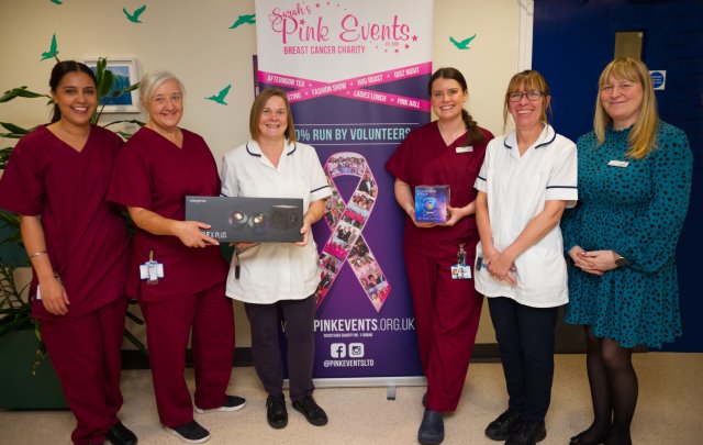 Sarah’s Pink Events Trustees visited the Breast Care Unit to take along items purchased for their use. Having consulted with the unit staff we found that there were 3 areas where we could make donations.